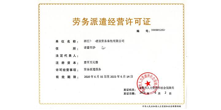勞務(wù)派遣許可證案例以及經(jīng)營(yíng)范圍分享:注冊(cè)資金1000萬(wàn)元整,許可證有效期3年。經(jīng)營(yíng)范圍:承接施工總承包和專業(yè)承包,建筑工程勞務(wù)分包;勞務(wù)派遣;人力搬運(yùn)裝卸服務(wù);綠化服務(wù);餐飲管理服務(wù);保潔服務(wù);投資咨詢服務(wù);房屋出租